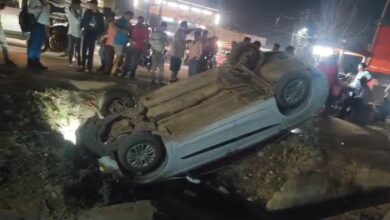 बड़ा हादसा….नाले में पलटी कार….युवाओं के साहस ने बचाई चालक की जान…..