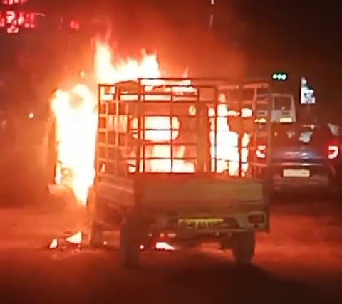 छोटा हाथी में अचानक लगी आग….आगजनी से क्षेत्र में मची अफरा-तफरी….
