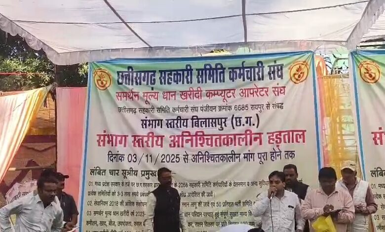 बिलासपुर– छत्तीसगढ़ में सहकारी समितियों के प्रबंधकों, खरीदी प्रभारियों और ऑपरेटरों की अनिश्चितकालीन हड़ताल लगातार जारी है, लेकिन राज्य सरकार और जिला प्रशासन अब तक स्थिति को संभालने में पूरी तरह विफल साबित हो रहे हैं। शनिवार तक पूरे प्रदेश में 15,000 से अधिक कर्मचारी अपनी चार सूत्रीय मांगों को लेकर धरने पर डटे हुए हैं, जबकि सरकार समाधान निकालने के बजाय सिर्फ खरीदी शुरू करने की तारीखें दोहराने में व्यस्त है।