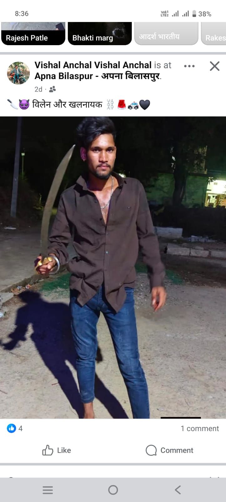 सोशल मीडिया पर “विलेन” बनने की कोशिश…..बिलासपुर पुलिस ने तलवार के साथ युवक को किया गिरफ्तार…..