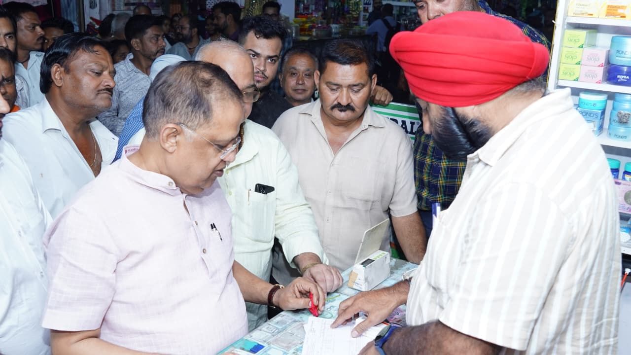 दुकानदारों के बीच भाजपा विधायक अमर अग्रवाल पहुंचे……जीएसटी से होने फायदों के स्टीकर को किया चस्पा…..