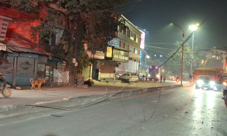 बिजली के टूटे तार मार्ग हुआ अवरुद्ध…. राहगीरों की जान जोखिम में…..सड़क पर रुकी गाड़िया….