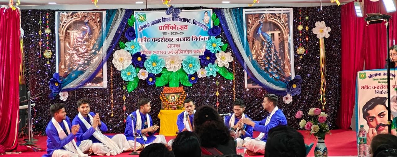 बिलासपुर–मौलाना आज़ाद शिक्षा महाविद्यालय में शहीद चंद्रशेखर आज़ाद निकेतन द्वारा आयोजित सांस्कृतिक कार्यक्रम अत्यंत भव्यता और उल्लास के साथ संपन्न हुआ। विद्यार्थियों की मनोहारी एवं सजीव प्रस्तुतियों ने सभागार को सांस्कृतिक चेतना और राष्ट्रप्रेम के भावों से भर दिया।
