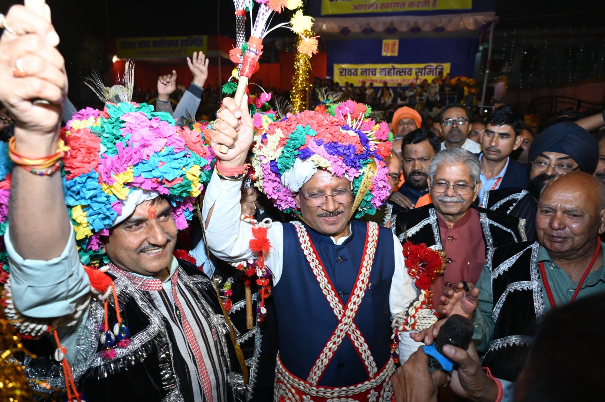 मुख्यमंत्री पारंपरिक वेशभूषा में रावत नर्तक दलों के बीच पहुंचे और ढोल–नगाड़ों की गूंजती धुन पर उनके साथ झूमते हुए कलाकारों का मनोबल बढ़ाया। उन्होंने नर्तन दलों की प्रस्तुति की सराहना करते हुए कहा कि यह सांस्कृतिक धरोहर आने वाली पीढ़ियों को प्रेरित करती रहेगी।