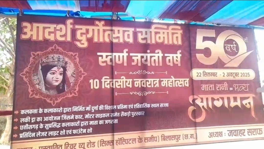 बिलासपुर– सोमवार से शारदीय नवरात्र प्रारंभ हो रहा है।जहां पूरे देश भर में मां दुर्गा की विशेष पूजा आराधना के साथ भक्ति का महापर्व मनाया जाता है।इसी कड़ी में बिलासपुर के सुभाष नगर स्थित आदर्श दुर्गा उत्सव सेवा समिति इस बार नवरात्रि महोत्सव को ऐतिहासिक और अविस्मरणीय बनाने जा रही है।
