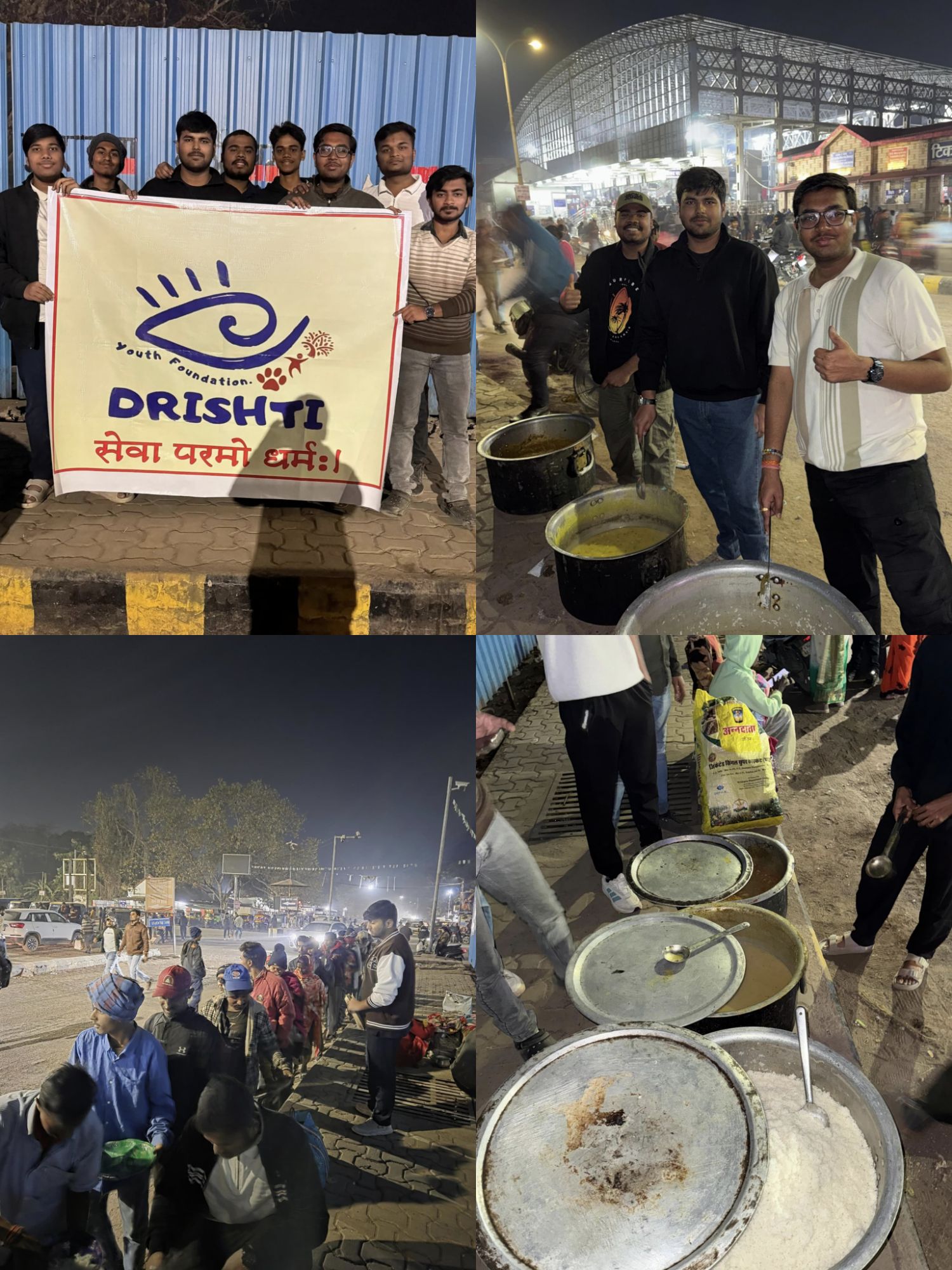 इस पुनीत कार्य को करते इस संस्था को छै माह होने जा रहा है।आपको बताते चले कि दृष्टि यूथ फाउंडेशन द्वारा बिलासपुर रेलवे जंक्शन के बाहर विगत 6 माह से प्रति सप्ताह मंगलवार, शनिवार भोजन वितरण किया जाता है। निशुल्क भोजन सेवा लगभग 450 से 500 जरूरतमंद लोगों को स्वच्छ, पौष्टिक भोजन प्रति सप्ताह स्वयं यूथ फाउंडेशन के युवाओं द्वारा परोसा जाता है।