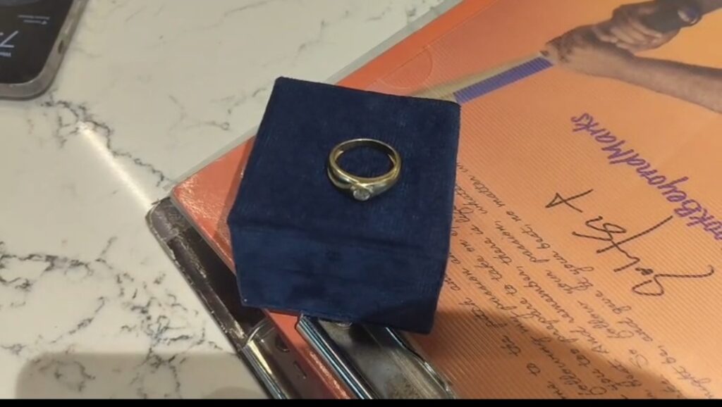 अंगूठी का विवरण: 5.620 ग्राम (14 कैरेट सोना) और 0.46 सेंट हीरा।