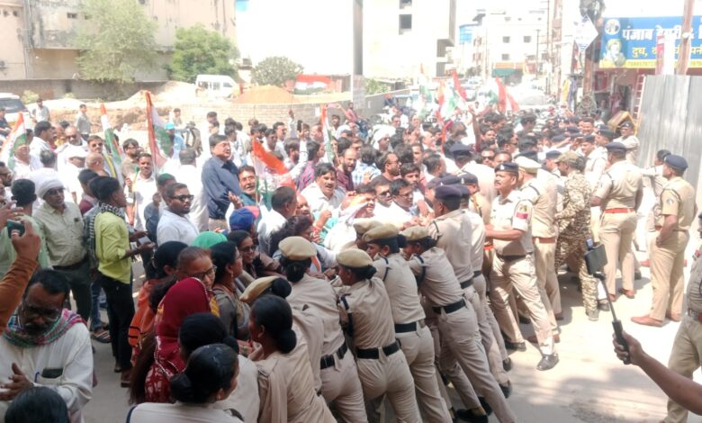 भाजपा सरकार के खिलाफ कांग्रेस कार्यकर्ताओं का उग्र प्रदर्शन…..भाजपा कार्यालय के बाहर कांग्रेसियों ने किया घेराव…..पुलिस और कांग्रेस कार्यकर्ताओं के बीच हुई झूमझटकी…..