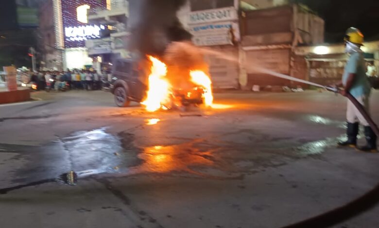 दुकानदारों और राहगीरों ने बताया कि वाहन थार जीप थी, जो कुछ ही मिनटों में पूरी तरह खाक में तब्दील हो गई।