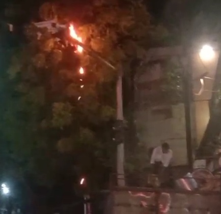 स्थानीय लोगों का कहना है कि समिति के सदस्यों ने सड़क पर बेतहाशा पटाखे छोड़े, जिससे यह हादसा हुआ। फिलहाल पुलिस मामले की जांच कर रही है और नुकसान का आकलन किया जा रहा है।