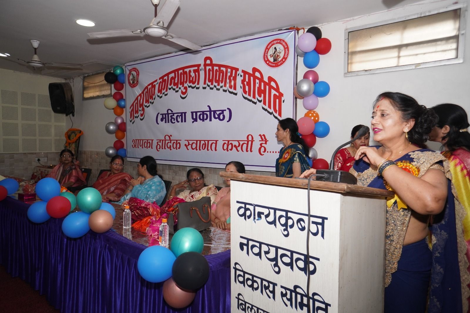 इसके पश्चात मुख्यअतिथि नलिनी पांडे का स्वागत समाज की अध्यक्षा चंद्र किरण बाजपेई एवं सचिव ममता तिवारी के द्वारा किया गया,एवं विशिष्ट अतिथि रितु शैलेश पांडे का स्वागत कार्यकारी अध्यक्ष नमिता बाजपेई, उपाध्यक्ष मृदुला अवस्थी, उपाध्यक्ष सुमन अवस्थी द्वारा किया गया। कार्यक्रम की शुरुआत प्रगति शुक्ला द्वारा गणेश वंदना से की गई। इसके पश्चात विशिष्ट कार्यों के लिए समाज की महिलाओं को सम्मानित किया गया।