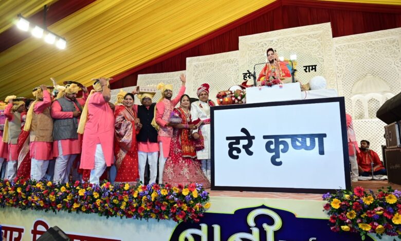 बिलासपुर। श्री प्रेम सेवा परिवार के द्वारा आयोजित नानी बाई का मायरा कथा एवं भजन कार्यक्रम में आखिरी दिन जया किशोरी के भजनों से श्रद्धालुओं मंत्र मुग्ध हुए। श्री प्रेम सेवा परिवार के सदस्य आज जैसे ही गाजे बाजे के साथ मायरा लेकर कथा पंडाल में पहुंचे श्रद्धालु जन भगवान कृष्ण राधा के गीतों में झूम कर नाचने लगे।श्री प्रेम सेवा परिवार के सदस्य सर में मायरा वैवाहिक भात सामग्री लेकर थालों में सजे 56 प्रकार के व्यंजन , मिष्ठान एवं शादी विवाह की पूरे रस्म की सामग्री लेकर पंडाल में पहुंचे और मायरा के रूप में जया किशोरी को चुनरी ओढ़ाई गई,एवं भात की रस्म पूरी की गई। श्रद्धालु झूम कर नाचे,श्री प्रेम सेवा परिवार के सदस्यों तथा पूरे पंडाल में हजारों की तादाद में श्रद्धालु भक्ति गीतों में झूम कर नाचने लगे। रविवार को पूजा कथा पंडाल में ऐसा लग रहा था।