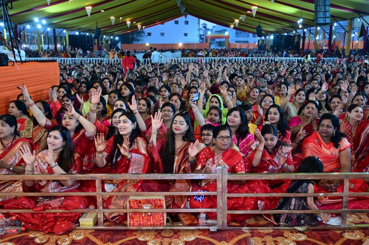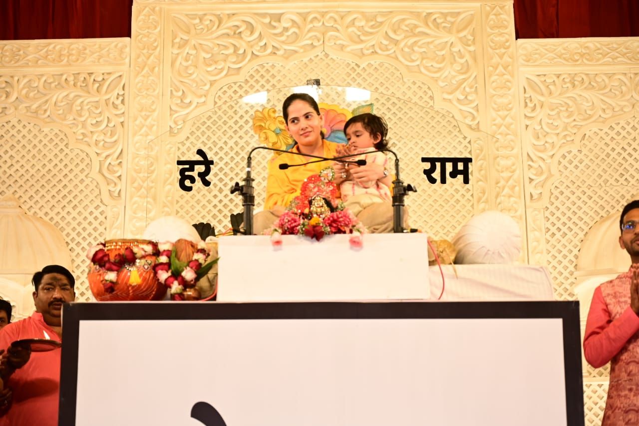 यही स्थिति नानी बाई के जीवन में रही। जब द्वारका से भगवान मायरा लेकर आ रहे थे तो ऐसा लग रहा था कि राजा का रथ आ रहा है नानी बाई ने नदी किनारे पेड़ में बैठे तोता से पूछा कौन आ रहा है। भगवान रुक्मणी के साथ और नरसिं मेहता को लेकर मायरा लेकर आ रहे थे नानी बाई खुश हो गई और अपने ससुराल में जाकर बताने लगी मेरा भाई आया है मायरा लेकर। और वह खुशी के गीत गाने लगी। रुक्मणी ने जब नानी बाई को गले से लगाए तो पूरे गांव में चर्चा होने लगी। आंसू बहाते आज नानी बाई बहुत खुश थी। कथा में उन्होंने बताया कि किस प्रकार से भगवान खुद नानी बाई के मायरा में अपने हाथों से बैठने के लिए दरी बिछा रहे थे। और 56 करोड़ का मायरा भेंट किया। विश्व विख्यात कथा वाचक जया किशोरी ने भजन गीत एवं कथा के माध्यमसे समाज को भगवान की भक्ति करने महिलाओं का सम्मान करने तथा अपनी परंपरा रीति रिवाज को लेकर शुभ कार्य करने का संदेश भी दिया। और वृंदावन, राधा कृष्ण और खाटू श्याम बाबा के गीतोंसे श्रद्धालु झूमते रहे।