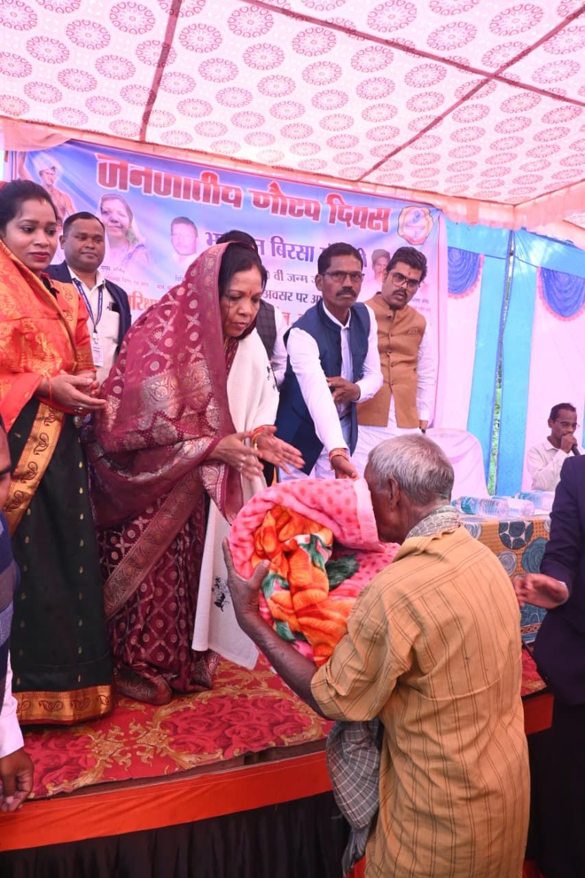 कार्यक्रम में मुख्य अतिथि के रूप में प्रदेश की प्रथम महिला कौशिल्या विष्णु देव साय उपस्थित रहीं। उन्होंने अपने प्रेरक उद्बोधन में कहा कि भगवान बिरसा मुंडा केवल जनजातीय समाज के नहीं बल्कि पूरे भारत के महानायक हैं,जिन्होंने अपने संघर्ष और नेतृत्व से समाज को जागृति,स्वाभिमान और एकता का संदेश दिया। उन्होंने कहा कि आदिवासी समाज की संस्कृति,उनके रीति-रिवाज और प्रकृति के प्रति सम्मान भारतीय जीवन मूल्यों का आधार हैं।श्रीमती कौशिल्या जी ने स्वास्थ्य शिविर,वस्त्र मेला,कंबल वितरण और समरसता भोज जैसे कार्यक्रमों की सराहना करते हुए कहा कि ऐसे आयोजन न केवल जनसेवा का माध्यम हैं बल्कि समाज को जोड़ने वाली कड़ी भी हैं। उन्होंने समिति के कार्यों की प्रशंसा करते हुए ग्रामीणों से आग्रह किया कि वे शिक्षा, स्वास्थ्य और आत्मनिर्भरता की दिशा में आगे बढ़ें और अपनी सांस्कृतिक विरासत को सहेजकर रखें।