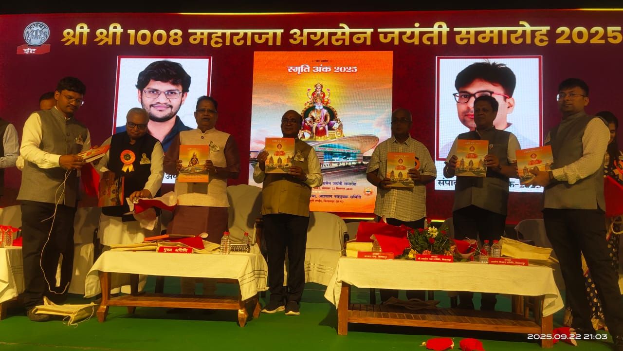 अग्रसेन जयंती समारोह के अवसर पर समाज की पत्रिका का विमोचन किया। प्रतिभाओं को सम्मानित किया गया। 15 विभिन्न स्पर्धा एवं आयोजन में भाग लेनेवाले 300 से अधिक महिलाओं बच्चों युवाओं को प्रथम द्वितीय , तृतीय का पुरस्कार दिया गया। कुंदन पैलेस में महाराजा अग्रसेन जयंती समारोह पर समाज के द्वारा विधायक अमर अग्रवाल के जन्मदिन का केक भी काटा गया। विधायक अमर अग्रवाल, शशि अग्रवाल ने महाराजा अग्रसेन जी की मूर्ति पर पूजा अर्चना कर कार्यक्रम का शुभारंभ किया। सवामनि भोग का प्रसाद भी चढ़ाया। समाज के पदाधिकारी ने विधायक अमर अग्रवाल को जन्मदिन की बधाई देते हुए कहा कि विधायक अमर अग्रवाल ने राजनीति को अपना सेवा का माध्यम बनाया है। आज समाज की मौजूदगी में विधायक अमर अग्रवाल ने अपने जन्मदिन का केक काटा तथा सभी को अग्रसेन जयंती की बधाई दी। विधायक अमर अग्रवाल ने प्रतिभावान बच्चों को सम्मानित किया। यह सिल्वर मेडल प्रशांति पत्र से सम्मानित किया। अग्रवाल समाज के ऐसे प्रतिभावान जिन्होंने शिक्षा के क्षेत्रमें मुकाम हासिल किया उन्हें विधायक अमर अग्रवाल ने सम्मानित किया।