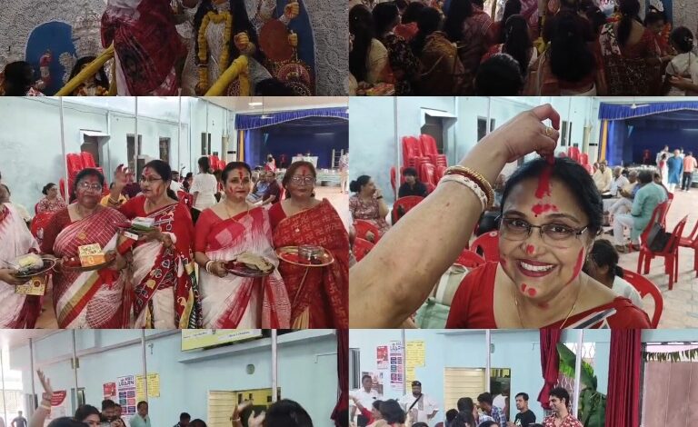 सामुदायिक एकजुटता के इस पर्व में महिलाएं पारंपरिक लाल-सफेद साड़ी पहनकर शामिल हुईं और “जय मां दुर्गा” के जयकारों से माहौल गुंजायमान हो उठा। बंगाली समाज की महिलाओं का कहना है कि जैसे बेटी को विदा करने से पहले रस्म की जाती है, उसी भाव से मां दुर्गा को भी सिंदूर खेला के जरिए विदा किया जाता है, ताकि उनका आशीर्वाद पूरे वर्ष सभी पर बना रहे।