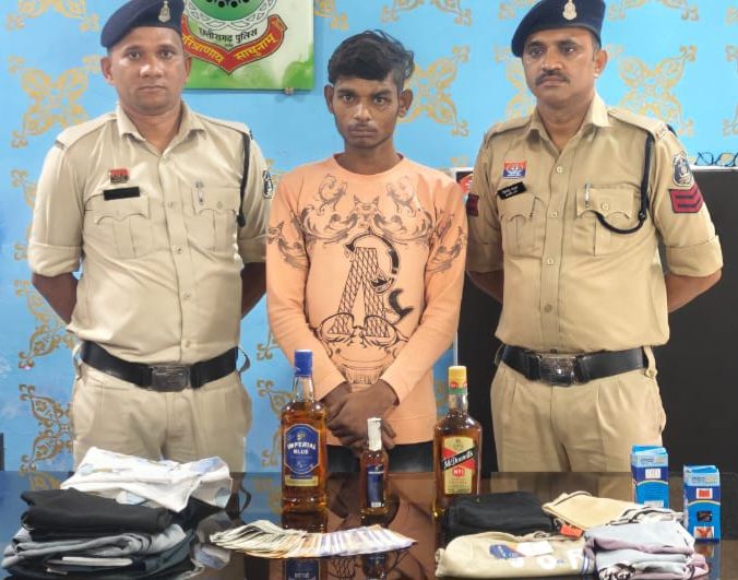 शराब दुकान में सेंधमारी कर चोरी के मामले में पुलिस ने दिखाई तत्परता एक आरोपी चोर गिरफ्तार दूसरा चोर फरार…. सीसीटीवी में कैद हुई घटना…..