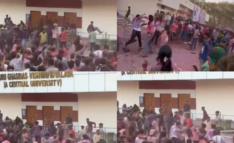 बिलासपुर। गुरु घासीदास केंद्रीय विश्वविद्यालय परिसर में सोमवार को होली मिलन कार्यक्रम रंग बरसे 5.0 के दौरान अचानक माहौल बिगड़ गया। ब्रदरहुड पैनल के आयोजित इस कार्यक्रम में बड़ी संख्या में छात्र शामिल हुए थे। कार्यक्रम के दौरान दो गुटों के बीच कहासुनी शुरू हुई, जो देखते ही देखते मारपीट में बदल गई। प्रत्यक्षदर्शियों के अनुसार छात्राओं को लेकर विवाद शुरू हुआ। शुरुवाती दौर में पहले बहस हुई, और बहस इतनी बढ़ गई कि देखते देखते आपस में छात्रों के बीच में धक्का-मुक्की शुरू हो गई। कुछ ही देर में दोनों पक्षों के समर्थक आमने-सामने आ गए। जमकर एक दूसरे के साथ मारपीट करने लगे।वायरल वीडियो के समाने के बाद आप देख सकते है कि कैसे होली मिलन का कार्यक्रम लात घुसे में तब्दील हो गया।वही इस मारपीट में कुछ छात्रों छात्रों का कहना है कि दोनों गुट के लोगों को गहरी चोट आई है।