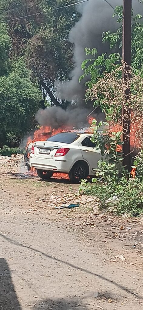 चारपहिया में अचानक लगी आग…. दो वाहन जलकर खाक….