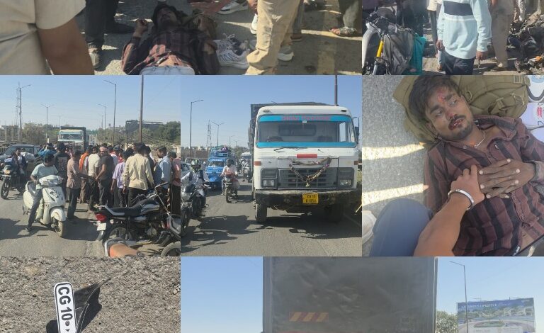 लालखदान ओवरब्रिज में दर्दनाक सड़क हादसा…तेज रफ़्तार हाइवा से बाइक सवार युवक हुआ गंभीर रूप से घायल…..