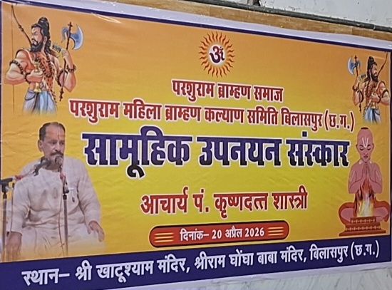 बिलासपुर–सोमवार को परशुराम ब्राह्मण समाज एवं परशुराम महिला ब्राह्मण कल्याण समिति बिलासपुर द्वारा106 बटुकों का सामूहिक उपनयन संस्कार आचार्य पंडित कृष्ण दत्त शास्त्री ने श्री खाटू श्याम मंदिर, श्री राम घोंघा बाबा मंदिर परिसर में सम्पन्न कराया।