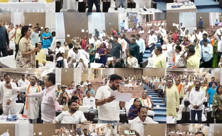 नगर निगम की बैठक में हंगामा…नारेबाज़ी और आरोपों की बौछार….
