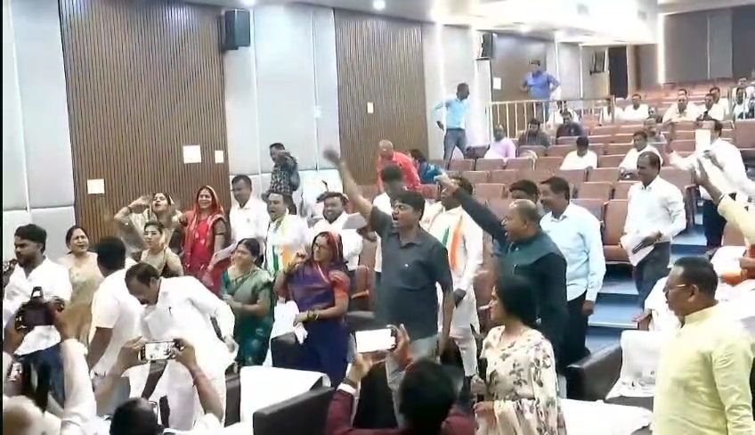नगर निगम की बैठक में हंगामा…नारेबाज़ी और आरोपों की बौछार….