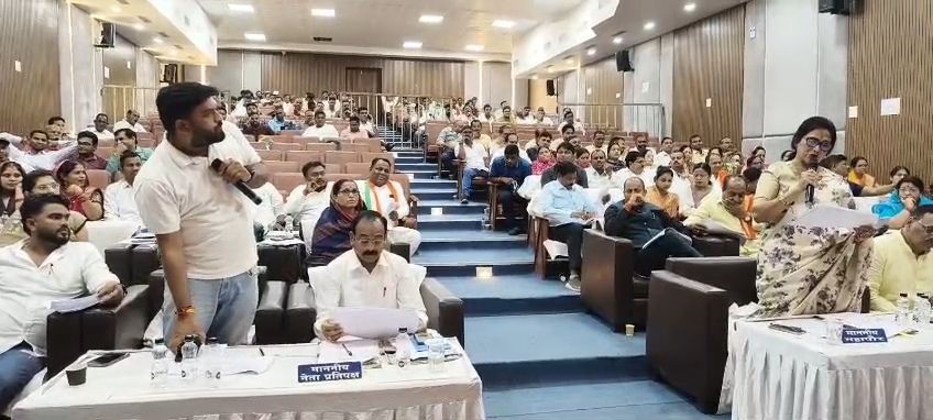 देवकीनंदन दीक्षित सभाभवन (लाल बहादुर शास्त्री स्कूल) में बैठक की शुरुआत से पहले बीजेपी पार्षदों ने बैठक व्यवस्था को लेकर कड़ा ऐतराज़ जताया। पार्षद तिलक साहू ने सीटिंग अरेंजमेंट को लेकर सवाल उठाए। पार्षद रीता कश्यप ने मेयर पूजा विधानी पर आरोप लगाया कि कांग्रेस पार्षदों के वार्डों को तरजीह दी जाती है।