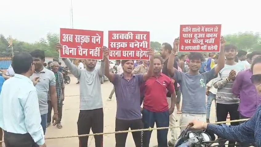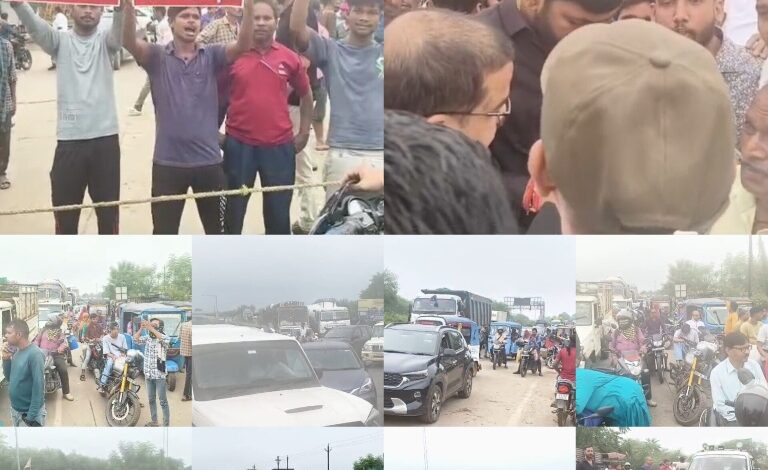 जर्जर सडक़ से परेशान ग्रामीणों ने एनएच किया जाम….. आधा दर्जन गांवों को जोडऩे वाले खराब मार्ग को लेकर प्रदर्शन..